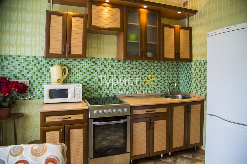 В такой квартире вы отдохнете после рабочего дня или активной экскурсии по городу на удобной кровати, посмотрите любимые передачи на большом плазменном мониторе, разложите свой багаж на полках платяного шкафа или немного поработаете на мягкой кожаной софе, подключившись к бесплатному Wi-Fi.
