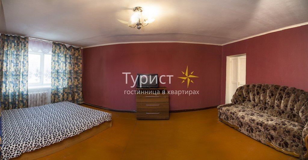 Уютные и светлые апартаменты в Кировском районе имеют всего одну комнату, в которой разместятся с удобствами четыре человека.